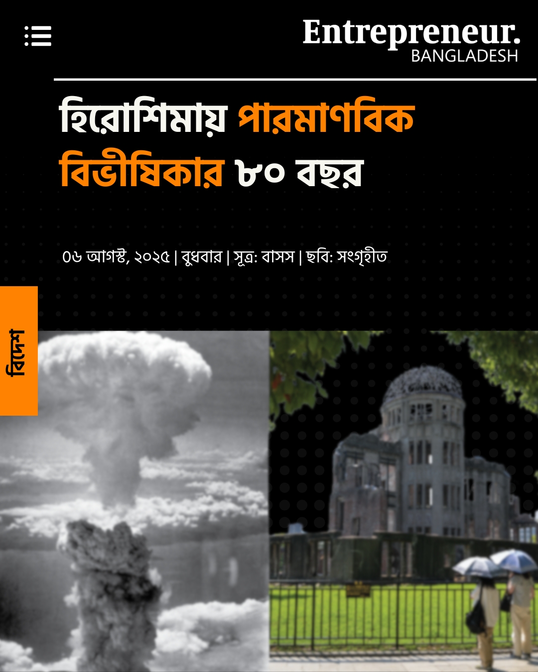 “বিশ্ব এখন আবার সেই বিপজ্জনক মোড়ে দাঁড়িয়ে, যেখানে পারমাণবিক অস্ত্র নিয়ে আস্ফালন চলছে। ইউক্রেন যুদ্ধ এবং মধ্যপ্রাচ্যের সংঘাতগুলো প্রমাণ করে, অতীত থেকে শিক্ষা নেওয়ার যে দরকার ছিল, তা উপেক্ষা করা হচ্ছে।”