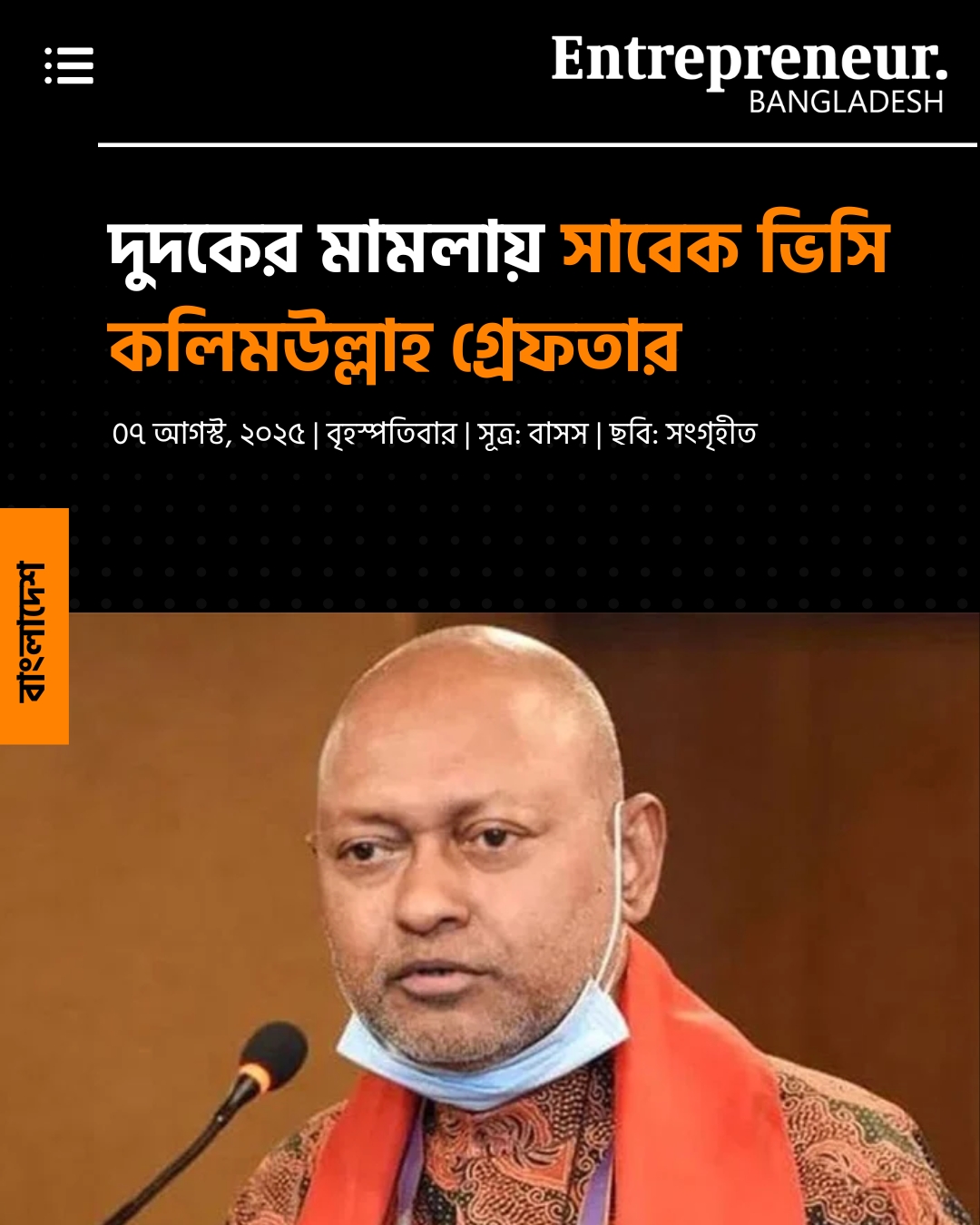 দুর্নীতি দমন কমিশনের (দুদক) দায়ের করা মামলায় বেগম রোকেয়া বিশ্ববিদ্যালয়ের সাবেক উপাচার্য অধ্যাপক ড. নাজমুল আহসান কলিমউল্লাহকে গ্রেফতার করেছে ঢাকা মেট্রোপলিটন পুলিশের গোয়েন্দা বিভাগ (ডিবি)।