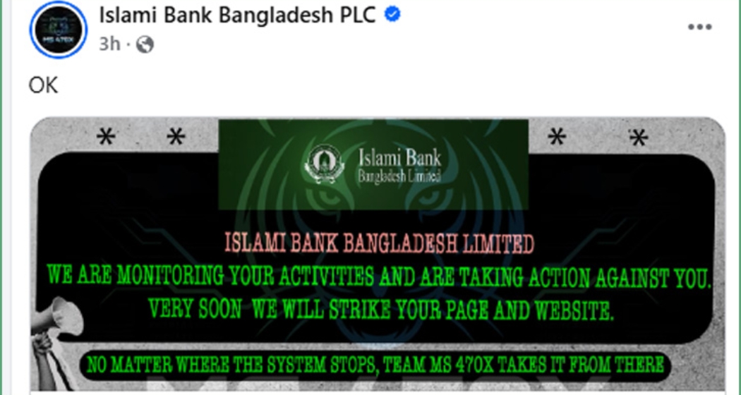 শুক্রবার (৩ অক্টোবর) ভোরে দেশের শীর্ষস্থানীয় আর্থিক প্রতিষ্ঠান ইসলামী ব্যাংক বাংলাদেশ লিমিটেড–এর অফিসিয়াল ফেসবুক পেজ হ্যাক করেছে একটি অজ্ঞাত হ্যাকার গ্রুপ। ভোর ৫টা ৪২ মিনিটে ঘটে যাওয়া এই ঘটনায় ব্যাংকের কোটি কোটি গ্রাহক ও সাধারণ মানুষের মধ্যে চরম উদ্বেগ ও উৎকণ্ঠা ছড়িয়ে পড়ে।