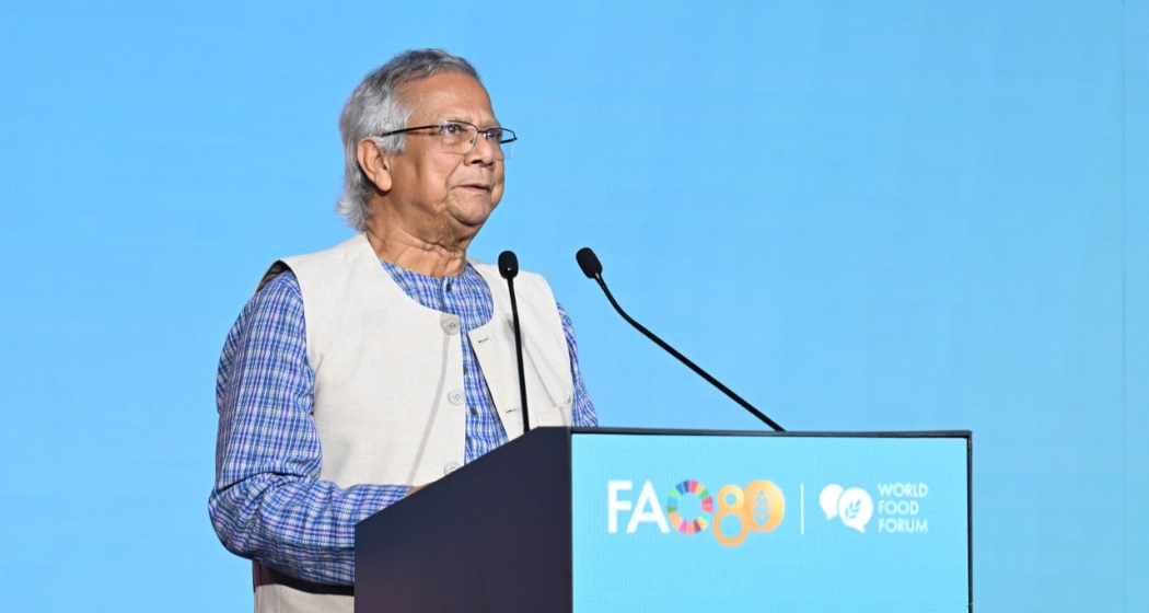 ইতালির রোমে জাতিসংঘের খাদ্য ও কৃষি সংস্থার (এফএও) সদর দপ্তরে আয়োজিত বিশ্ব খাদ্য ফোরাম (WFF) ২০২৫-এর উদ্বোধনী অনুষ্ঠানে প্রধান উপদেষ্টা ও নোবেলজয়ী অর্থনীতিবিদ অধ্যাপক ড. মুহাম্মদ ইউনূস আহ্বান জানিয়েছেন— “ক্ষুধামুক্ত পৃথিবী গড়তে আমাদের অর্থনৈতিক ব্যবস্থাই বদলাতে হবে।”