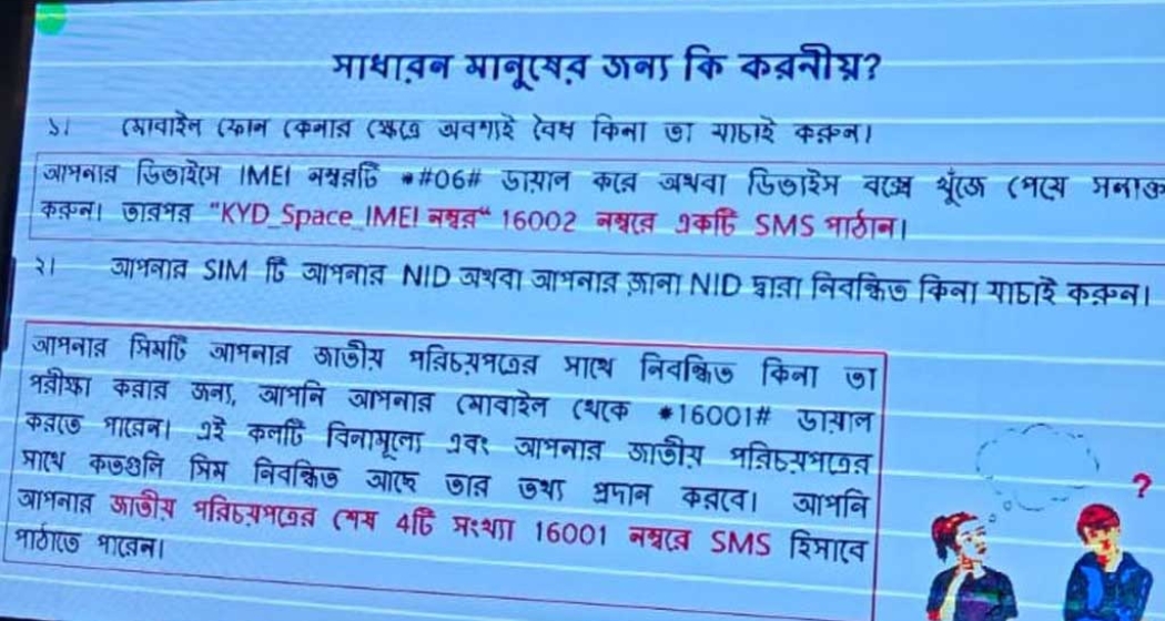 সরকার বলছে, গ্রাহকদের সচেতনতা ও সহযোগিতা ছাড়া এই বিশাল প্রকল্প সফল হবে না। শিগগিরই টেলিকম অপারেটর ও মোবাইল বিক্রেতাদের মাধ্যমে সচেতনতামূলক প্রচারণা শুরু হবে।