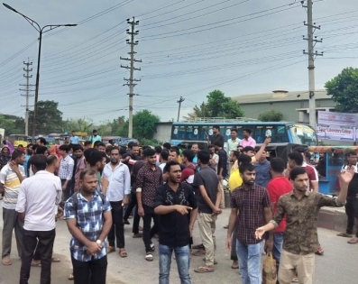 বকেয়া বেতন আদায়ের দাবিতে সাভারের তিনটি কারখানার শ্রমিকরা রাস্তা অবরোধ করেছে।